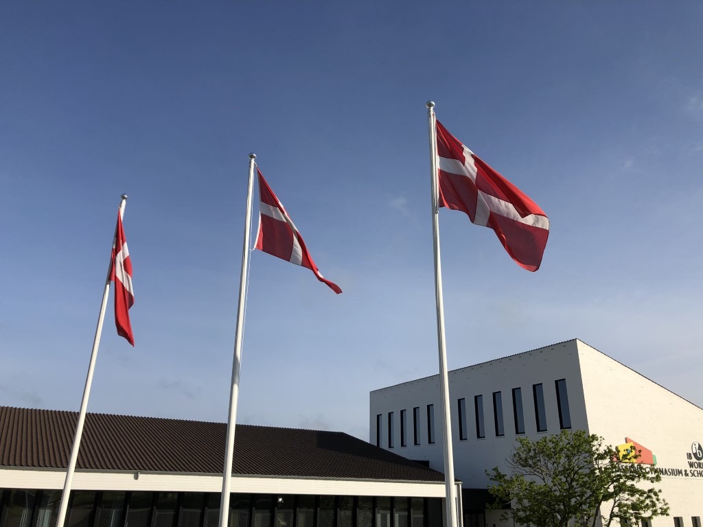 ”Vores pedel har sat de flag, som vi bruger til dimissionen, op foran skolens hovedindgang og hele vejen ind i bygningen. Det er en festdag, men vi lader det blive ved flagene, for dét, eleverne har brug for, er at se hinanden i klasserne og ikke, at lærere og ledelse står og spiller banjo og byder dem velkommen.”
