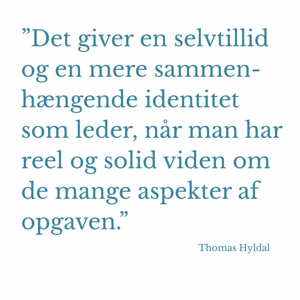 ”Det giver en selvtillid og en mere sammenhængende identitet som leder, når man har reel og solid viden om de mange aspekter af opgaven,” siger han.