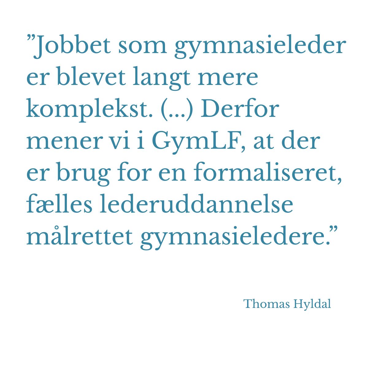 ”Jobbet som gymnasieleder er blevet langt mere komplekst. Samtidig er det over de sidste 20 år blevet meget mere et decideret lederjob. Derfor mener vi i GymLF, at der er brug for en formaliseret, fælles lederuddannelse målrettet gymnasieledere,” forklarer Thomas Hyldal, som er rektor på Gefion Gymnasium og medlem af GymLF’s bestyrelse.