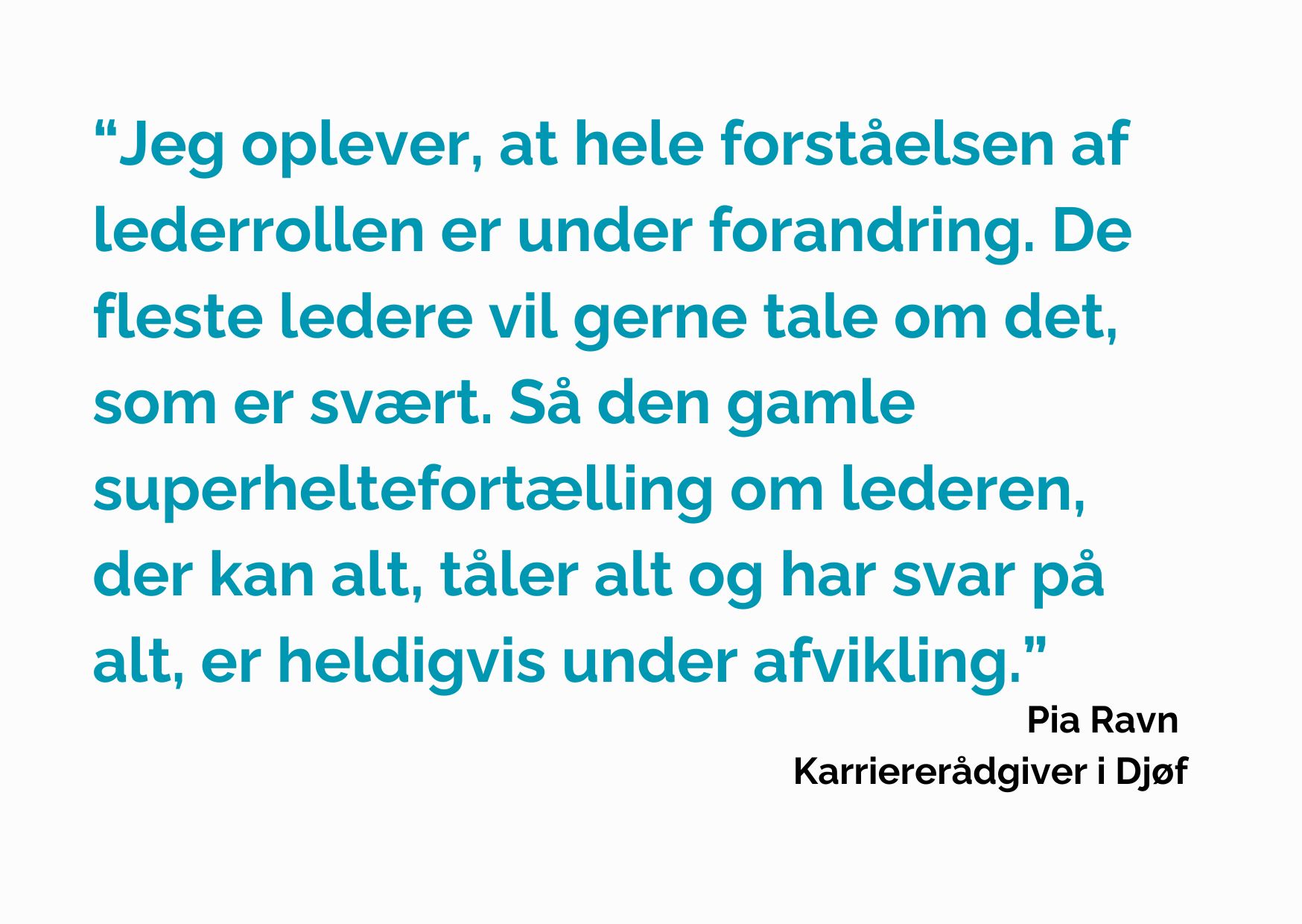 ”Jeg vejrer morgenluft. Jeg oplever, at hele forståelsen af lederrollen er under forandring. De fleste ledere vil gerne tale om det, som er svært. Så den gamle superheltefortælling om lederen, der kan alt, tåler alt og har svar på alt, er heldigvis under afvikling,” forklarer hun.