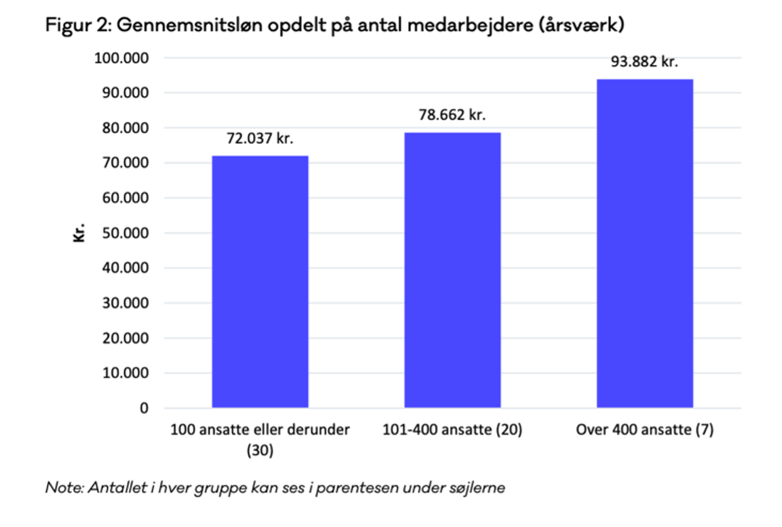 På samme måde tjener en topleder på en institution med 100 ansatte eller derunder 72.037 kroner om måneden mens en topleder på en institution med over 400 ansatte i gennemsnit tjener 93.882 kroner om måneden. Se graf.